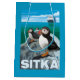 Puffins & kryssningfrakten - Sitka, Alaska - vintage resoraffischen skapades i 2007. Detta avbildar visar platser från Sitka, AK.