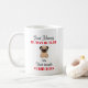 Anpassade roligt Pug mugg för att starta dagen med en bra stämning. Anpassa pugn mugg genom att lägga till namn i din pug och göra den här pugn mugg unik. I mitten av pugn mugg, en tecknad-stil-pug på dig, som håller öga på dig när du äter kaffe. Kom ihåg att du bara är en slaktare som är i tjänst med din pug. Pugget är ett underbart hund aveln som fyller dina dagar med kärlek. Gå in i puckelvärlden med vårt anpassade pug mugg. Börja din dag med ett leende med Pug mugg!