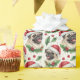This festive wrapping paper features a charming watercolor pug wearing a Santa hat, surrounded by classic holiday greenery. Perfect for pug lovers, dog parents, and anyone who wants their Christmas gifts wrapped with personality, warmth, and a little humor.
