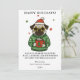Skicka en knippe högtidsglädje och bedårande bus med detta roliga julkort med pug! Designen visar en charmig illustration av en pug som bär en festlig ful jultröja och coola stjärnformade solglasögon medan den njuter av en mysig mugg varm choklad med marängstoppen. Detta kort är roligt, fantasifullt och helt unikt, vilket gör det perfekt för puginnehavare och hundälskande familjer som vill ha en minnesvärd, humoristisk och mysig hälsning för att sprida en riktigt Glad Jul!