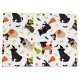 Gödpuggar i Halloween kostumlar och tricket eller behandling med tass avtryck, fladdermöss och hund ben på vit bakgrund.