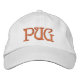 Om du kärlek Pug hundar kommer du att kärlek de här hattarna. Namn på ditt favoritdjur är broderat på. Om du vill ändra stil, namn eller färg klickar du bara på anpassa det.