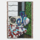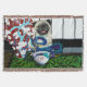 En söt pug hund och kinesisk drake är sitta framför en tom ris som gärna väntar på att bli matat lunch.