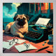 Pug Hund med glansigt päls och en vintage skrivmaskin