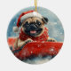 Pug Hund i Sledge Låt det snöa jul Julgransprydnad Keramik
