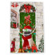 Pug Hund jul sitta utanför det dekorerade hemmet med julkrans, Julgran är en julklapp för hundälskare i perfekt.