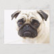 Stängning av en pug hund ansikte på en mängd presentartiklar för pug älskare.