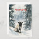 Pug i snö Vattenfärg jul Julkort