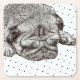 Luta lite skrynklig och grumlig pug på en svart och vit baksida. Perfekt för pug älskare i ditt liv