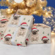 Pug med jultomten papper. Snygg juldesign av söta puggar med julhatt.