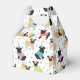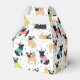 Party Pug hundar, som fyller på den sista dagen, jackar klädd i söta födelsedagspressar med ballonger, kakor och konetti mönster.