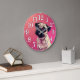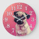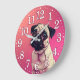 Pug Porträtt Ansikte Rosa Ombre Stor Klocka