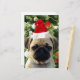 Cute Pug Puppy Hund med Julgran Ornaments Snö Man i bakgrunden.