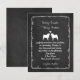 Pug Silhuetter med Hjärtan Krittavla Stil Bröllopsinbjudan. En rolig annonsering för ett förlovat par som älskar Pugs. Personifiera denna originella bröllopsinbjudan med det lyckliga parets namn och bröllopsdagsinformation. Besök Jenn's Doodle World för ännu fler bröllopsplaneringsprodukter med denna söta Pugs-design och fler hundrasers bröllopsinbjudningar.