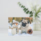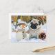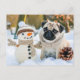 Pug Sitting Next to Snowman in Winter Vykort