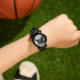 Ett svart och vitt foto av en mycket söt puggvalp med stort glansigt brunt ögon och diskett öron. Underbar gåva till dig själv eller älskare i ditt liv. Den bästa klockan någonsin!