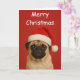 Pug with a Santa hat Custom Christmas Greeting Kort