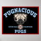 Team logotyp för de fiktiva "Pugnacious Pugs, Fetch-Boll 2013 Champions". Text med en rolig, gogögd pug teckning, på t-shirts, hooker, kort, presenter.