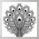 Pulsating Peacock Feather Decoupage Template Line Poster