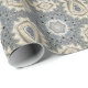 Denna infångande och invecklade kaleidoskopiska fraktur mönster har en symmetrisk, stjärnformad mittpunkt som utstrålar med snurrande, rekursiv design som påminner om organiska former, blommigtar eller oceaniska former. Paletten domineras av mjuka, muterade toner av beige, kräm, blek blått och grått, skapande en god och harmonisk atmosfär. Spiral är finfördelat med ömtåliga slingor, snurrar och små svarta håligheter som tillför djup och kontrast till sammansättningen. Det upprepande mönster ge är en känsla av oändlig komplexitet och mässande skönhet, som framkallar en känsla av kosmisk eller naturlig elegans.