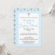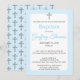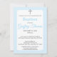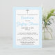 Fira ditt barns speciella dag med denna enkla dopinvitation i akvarell, med ett grått kors och pudrig blå bakgrund för en lugn och graciös design med ett upprepat grått korsmönster på baksidan.