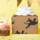 En svart silhouette av en cowboy som rider en sparka bakut puma.