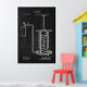 Ett originaldiagram över en ölpumpuppfinning patenterad 1878 designad för väggkonst på en kritbakgrund.