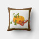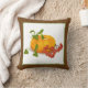 Pumpa bär, blad höstfärger Thanksgiving kastkudde. Den har en gul och orange pumpa med blad och röda bär. Det finns en brun kant runtom.