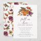 Pumpa Bebis Shower Inbjudningar. Fira höstens festligheter med handmålade akvarellpumpor, burgunderröda och terrakotta höstblommor, skogsgröna och rostfärgade botaniska motiv, och burgunderröd handskriven kalligrafi. Låt oss hjälpa dig att göra din bebis shower extra speciell med denna vackra inbjudan.