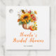 Rustik bröllopsdusch etikett med en pumpa blomsterbukett av solrosor och bladverk. Perfekt för en höst bröllopsdusch. Orden kan ändras för att passa dina egna detaljer eller krav