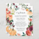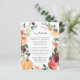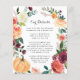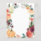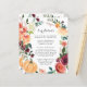 Designen har en elegant akvarellblommig krans i nyanser av burgunderröd, orange, elfenbensvit, rosafärgad och mer över höstbotanisk grönska. En vacker höstpumpa är en del av mallen med krysantemum, dahlior, rosor och mer. Du kan ta bort demotexten och lägga till din egen. Du kan också lägga till en karta eller vad du vill på framsidan eller baksidan - det är helt anpassningsbart.