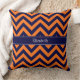 Pumpa Orange och Marinblå Stor Chevron Sicksack-mönster, Marinblått Band Namn Monogram Etikett