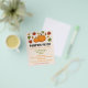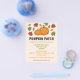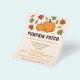 Personlig pumpafestdesign med orange tecknade pumpor tillsammans med några färgglada höstblad. Det finns flera textområden som kan anpassas med evenemangets detaljer.