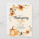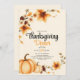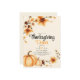 Rustik pumpa och höstblommor tack till middagsinbjudan Den har arrangemang av pumpor, höstblommor och kottar på beige bakgrund. Texten "TACK TILL MIDDAG" är i script typografi.