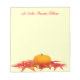 5,5" x 6" anpassadeblek - gul anteckningsblock med en avbilda av en orange pumpa på en säng av röd och guld- höst löv. Se den hela thanksgivinganteckningsblocksamlingen i HELGDAGAR dela upp.