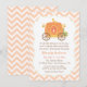 Bjud in dina gäster med denna söta, eleganta och klassiska inbjudan, perfekt för en babyprinsessa! Designen har en orange pumpa prinsessa vagn inspirerad av sagan, Askungen. Chevron sicksack-mönster i bakgrunden. Passar för barnets ankomst under höstperioden. Personalisera med festdetaljer.