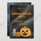 En färgglad inbjudan till en pumpa-utsniddningsfest. Designen visar en stor Jack-O-Lantern tillsammans med en mindre Jack-O-Lantern och en liten pojke som är redo att snida. En natt himmel med tunna moln bildar bakgrunden. All text (fram- och baksida) är redigerbar och kan enkelt ändras med hjälp av mallen. Om ytterligare textändringar önskas (olika teckensnitt, färg, storlek eller placering) välj " Anpassa denna design" och välj sedan "Anpassa med Design Editor". Ytterligare festdetaljer finns på baksidan på en liknande mörk bakgrund. Detta är en nedladdningsbar design - som gör det möjligt för dig att göra dina ändringar, ladda ner designen (båda sidor) och skriva ut din egen eller skicka ut