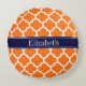 Pumpa Orange och Vit Marockansk Quatrefoil Gittermönster #5, Marinblått Band Namn Monogram Märke