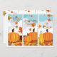 Tre paneler med pumpor och fallande löv. En höstinbjudan som passar för alla höstfiranden.