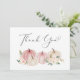 Elegant tack för ditt platta kort för duschen i flicka med "Tack" i ett snyggt-skript med hjärtsvikt och vattenfärger i rosa och vita pumpor och blommigt buketter. Anpassa ditt tackmeddelande i enkel modern typografi och lägg till namn i ett namnteckning-liknande skript, eller lämna tomt för en handskriven anteckning.