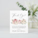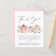 Elegantens budgetvänliga tack för ditt flicka-dusch med "Tack" i ett snyggt-skript med hjärtsvikt och vattenfärger med rosa- och krämpumpor och blommigt-buketter. Anpassa ditt tackmeddelande i enkel grått-typografi och lägg till namn i ett namnteckning skript.
