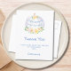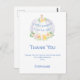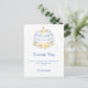Den här pojkens vykort för babyskor har en vit vattenfärgspumpa, gul ros och grönt. Det står: "Lite pumpa är på väg" i blå typografi och är lätt att anpassade. Ursprunglig vattenfärg © Michele Davies.