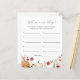 Spelkort för möhippa med en vattenfärgad kaskad av burga höstblommor och pumpor. Ett roligt sätt att interagera med duschgäster. HUR DU SPELAR: Visning foton av Bride and Groom tagna på olika platser och numrera dem 1-10. Se till att gästerna får skriva om varje foto. Personen med de mest korrekta svaren vinner!