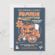 Scary Pumpkin Carving Tävling eller Party Poster stil inbjudan till Halloween. Med en färgstark vintage inspirerad pumpa, kött smart, knivar, ljus, en häxbroom, spökben och skallben och skrämmande karvat jack o lantern. Färg av orange, , bruna, blå och vita. Underbar för en pumpa som kör tävling eller halloween fest! Om du vill göra fler ändringar går du till Anpassa den här mallen. På grund kan du se "Vill du anpassa designen ännu mer? Klicka på EDIT med Design verktyg. Det kommer att krävas lite inlärning, men du kan ändra en del av typsnitt och en del färg, flytta sak runt eller ta bort det du behöver.