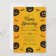 Gult Orange Halloween Two Spooky Födelsedagsfest inbjudan med svarta pumpor, Fladdermus & Sparkles Gräns Ram.