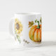 Pumpkin och solblommor med två drakflugor. Jumbo mugg, underbar för soppa också.