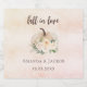 Ro guld, rosa övertoningsbakgrund. Dekorerad med en kräm-färgad och blommor. Anpassa och lägg till namn och bröllop-datumet. Text: fall i kärlek