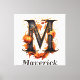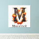 Pumpkin Halloween Namn Brev M Blommigt Monogram Canvastryck