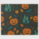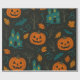 En festlig Halloween-design med lysande jack-o’-lyktor, eerie-haunted house, swirling fladdermus och höst löv. Bare träd och teal-snurrar ger en mystisk beröring och skapar en perfekt i den späckade atmosfären för att säsong ska kunna slå in pappra, dekorerade och hantverksmässiga projekt.