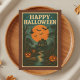 Gå in i en storybook Halloween-kväll med det här stavbindande hälsningskortet vintage-stil, där skrumpna pumpor glöms bort med missöde under en torkande skörd måne. Nöd längs en lindningsström, jack-o-lyktor flin leksak från skogen golv, deras varma flimmer som lyser vägen till ett mystiskt gammalt hus som genomborrades i avstånd. Fladdermus snurrar över himmel, en häxhatt hänger sig fräckt från gren i träd, och den skarpa hösten luft verkar hum med magi. Riken retro färg - bränd orange, bläckblått och skuggsvart - framkallar nostalgi och säsong charm i samma utsträckning. Perfekt för Halloween älskare som sörjer för glödande pumpor, hemsökta spår och en aning vintage stollig. Skicka det här kortet för att ge ett leende och säsongens anda!